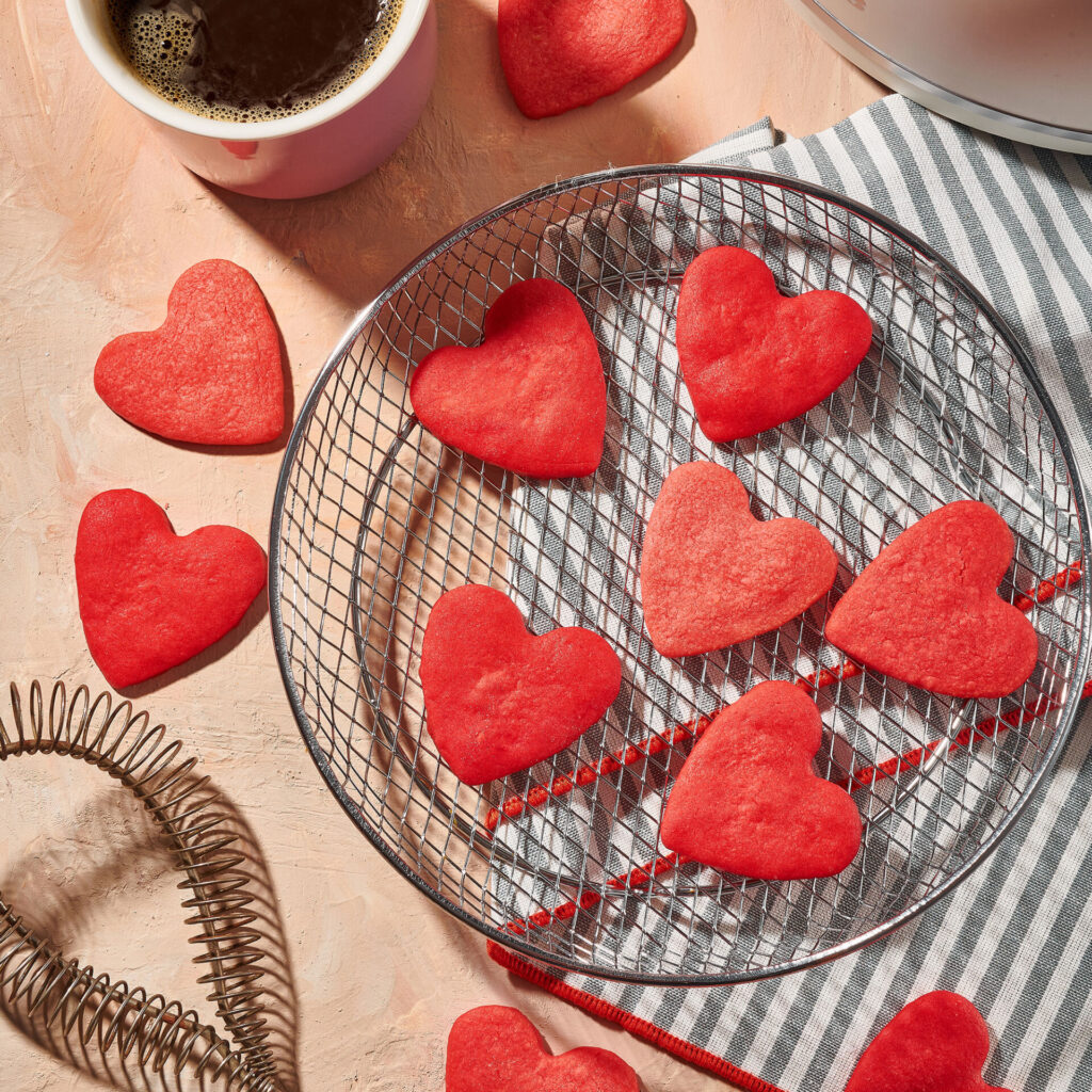 - Bruk en hjerteformet kakeform til å skjære ut kakene. Ta ut ekstra rester og rull ut på nytt for å lage flere kaker.