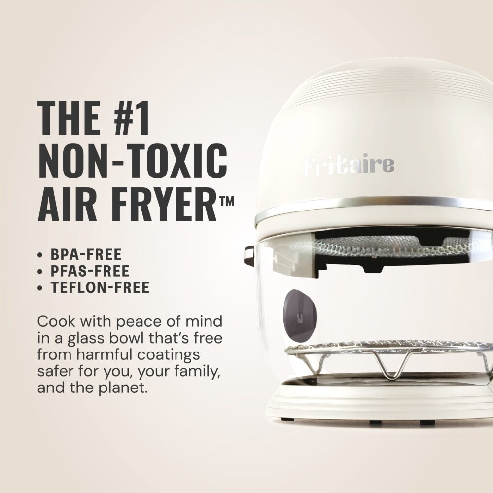 Fritaire Non-Toxic Airfryer™ Hvit – selvrensende, fargerik, rotisserie og mye mer. Ingen BPA, teflon eller PFAS. Brukes til steking, baking, oppvarming og tørking! Med gjennomsiktig 4,8 L glassbolle og 6 kokefunksjoner.